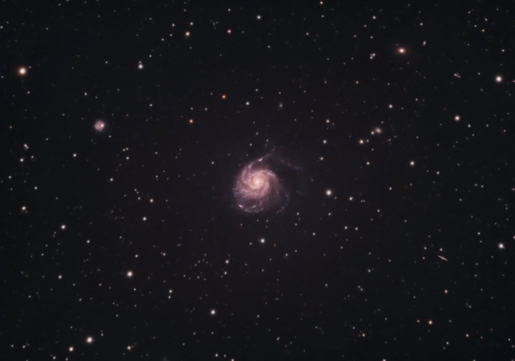 I captured the image above using a William Optics Zenithstar 73 apochromatic refractor, a one shot colour dedicated astronomy camera, and an Optolong L-Pro light pollution filter. At a modest focal length of 440mm, both galaxies can be seen floating effortlessly in a vast expanse of deep space, surrounded by an ocean of colourful stars, each one a possible Sun to some distant civilisation.